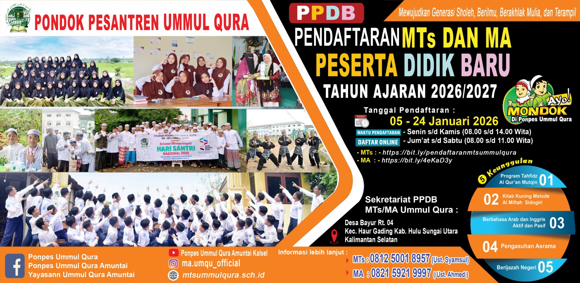 Alhamdulillah. Siswa dan Siswi MTs-MA Ummul Qura Amuntai raih gelar juara di MTQ ke XLV Tingkat Kabupaten Hulu Sungai Tengah M. Abdullah Akmal: Kelas 8 (Juara 2