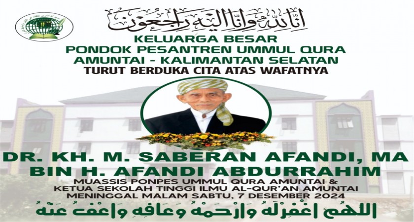 Telah berpulang ke rahmatullah Dr.KH.M.Saberan Afandi, MA, pada malam Sabtu, 7 Desember 2024, pukul 12.20. Semoga almarhum dicucuri rahmat, diterima segala amal, diampuni segala dosa. Amiin ya rabbal alamiin.